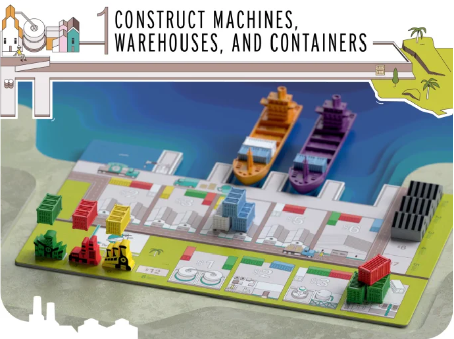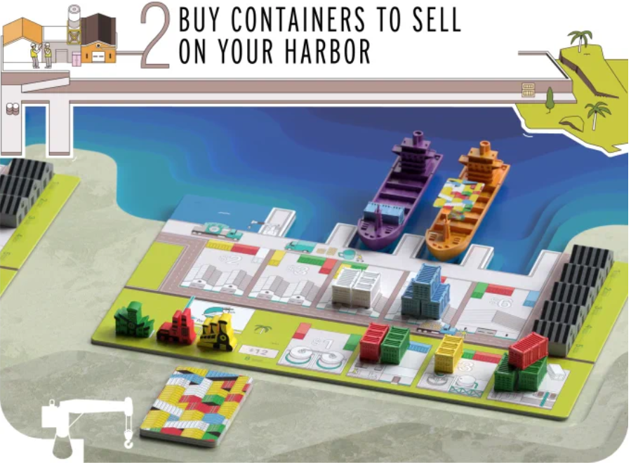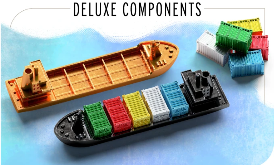 Включает в себя базовую игру, делюкс-апгрейд с металлическими контейнерами и кораблями, и дополнение.
